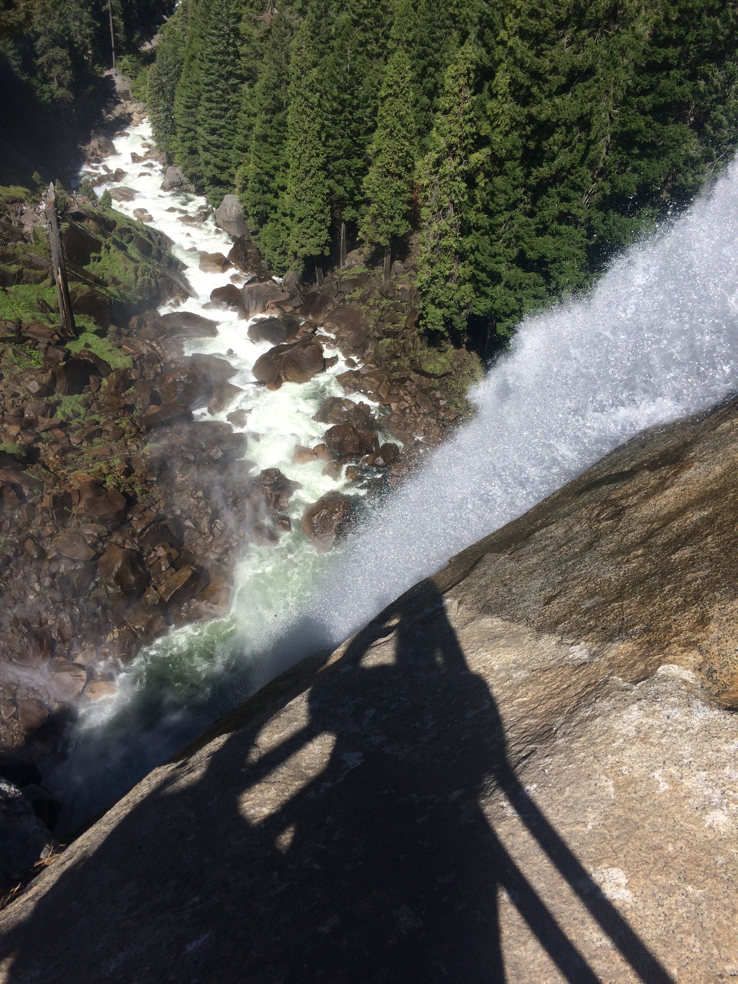 The hike was labeled “moderate-strenuous” by the National Park Service but I would advise those who want to go see Vernal Falls: the path was easy/moderate up until the footbridge below Vernal Falls, much of it uphill, but paved. After the footbridge, though, things got quite a bit more difficult. It’s uphill, not paved, and true to its name (The Mist Trail), you’re getting sprayed in the face from the waterfall as you’re climbing up 600 granite steps. It’s slippery, the steps vary from small to huge, and if you are not wearing hiking shoes, you’re not going to like this hike one bit. There were many people struggling because they weren’t prepared. It was much more on the strenuous side, but it was SO worth it for me when we got to the top!