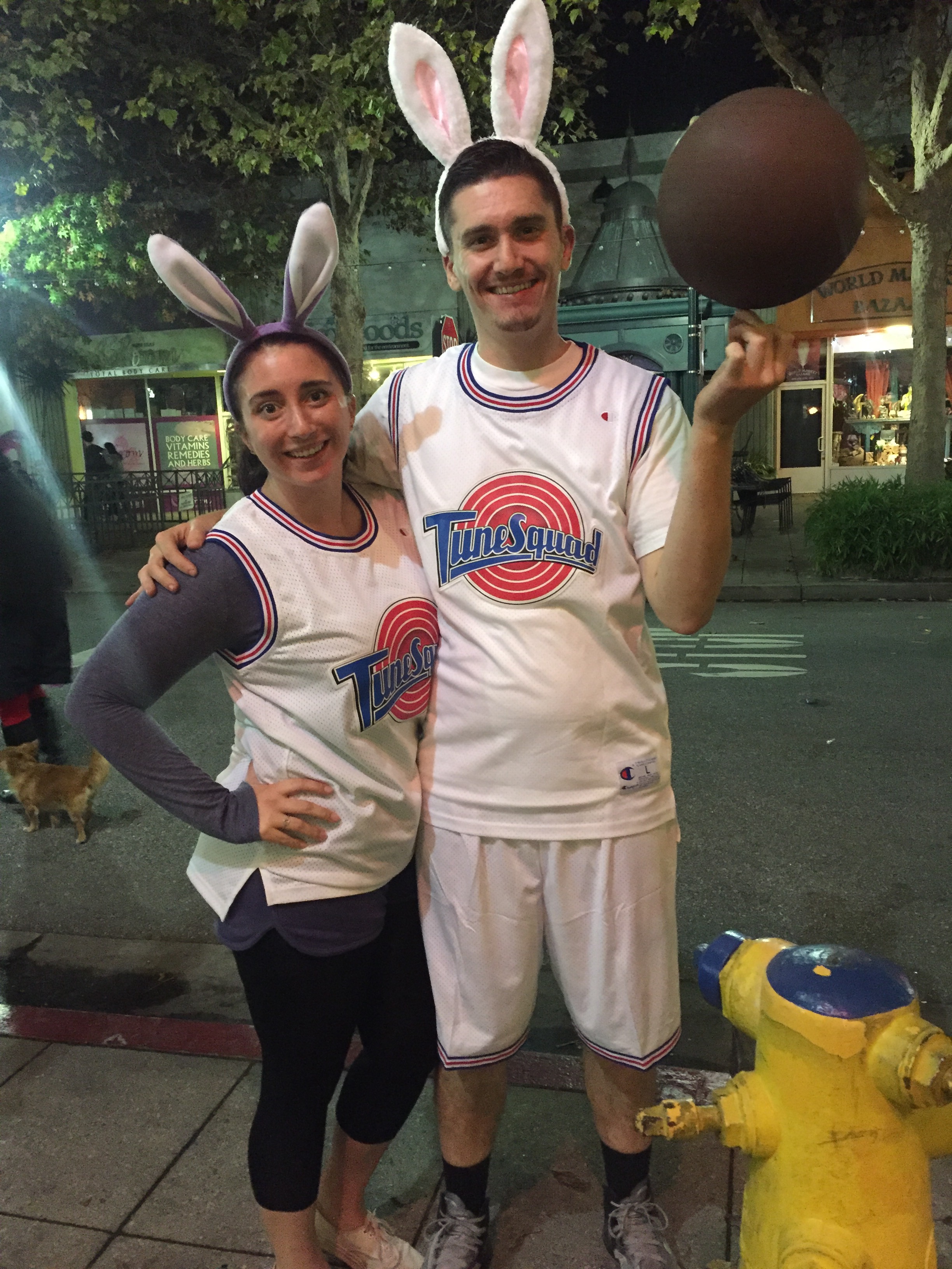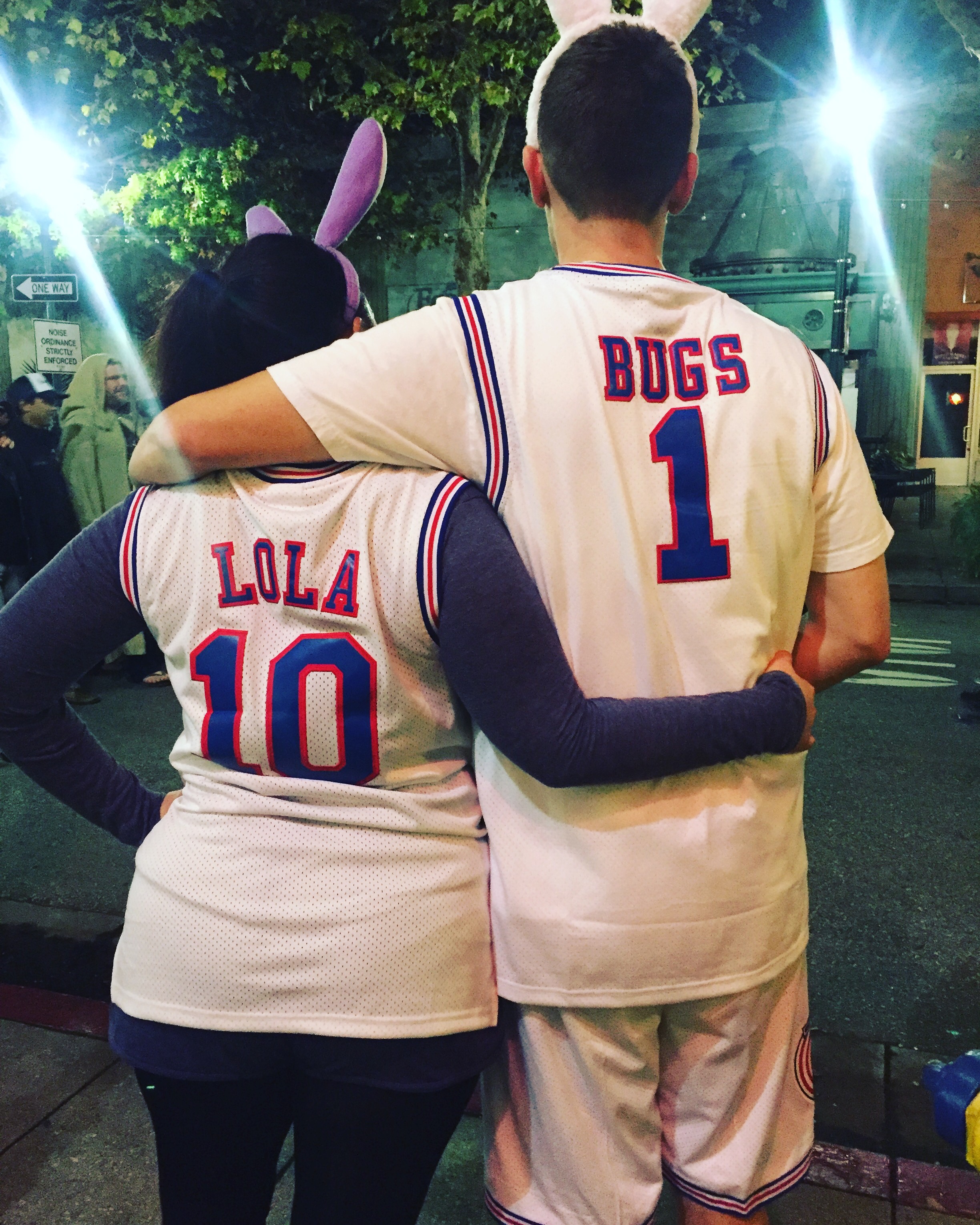 Last year, we dressed up as Roger and Jessica Rabbit. Apparently, we like a bunny theme because it was his pick this year, and we’re dressed up as Bugs and Lola Bunny from Space Jam!