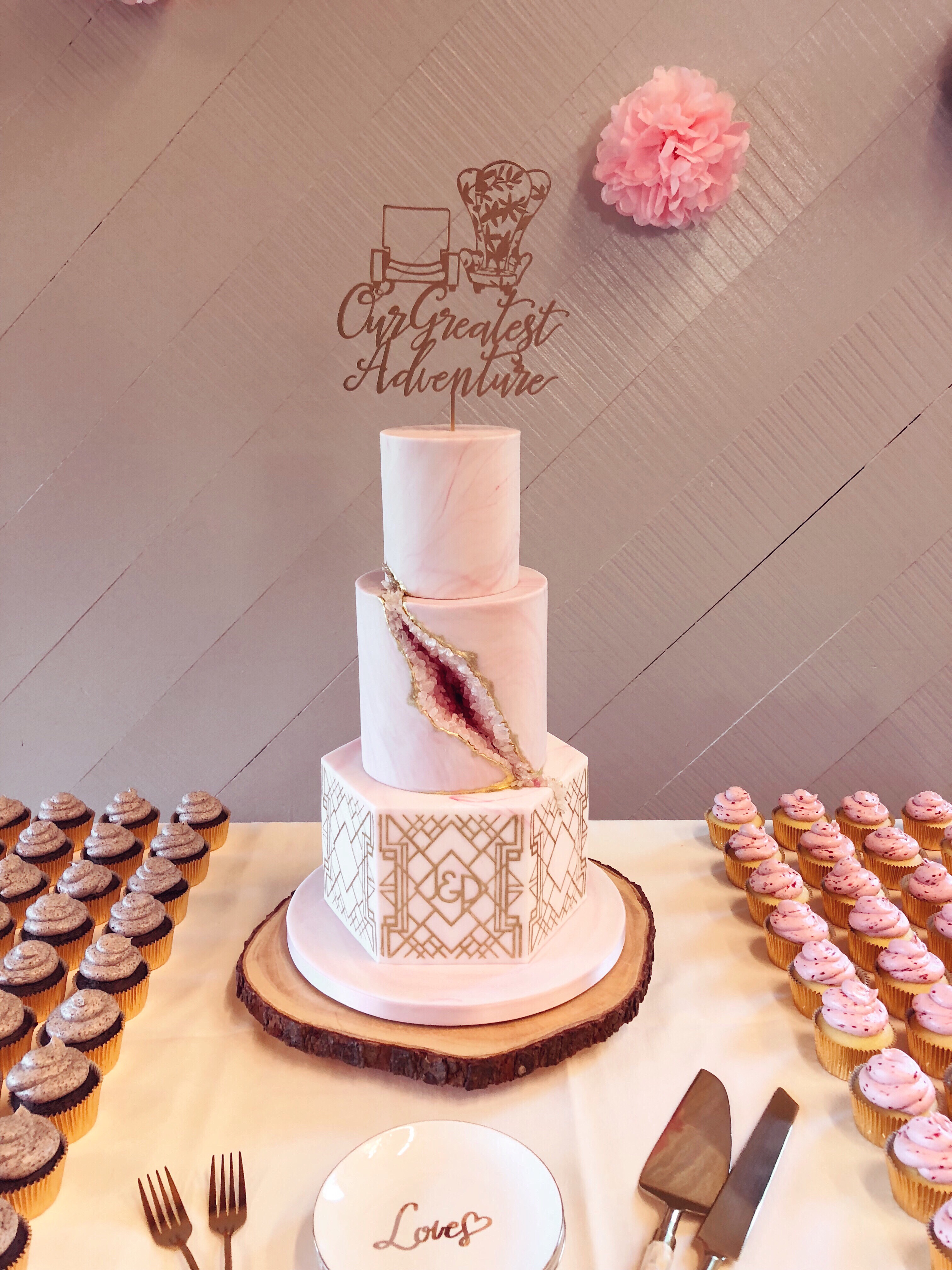 Look at that cake! I’m drooling just looking at it! They had a delicious art-deco-meets-geode cake, and it was beautiful. They supplemented with multiple types of cupcakes (the cookies and cream cupcake was so good!). They had a Disney + Pixar’s Up theme weaved throughout their ceremony and reception, which was an adorable touch.
