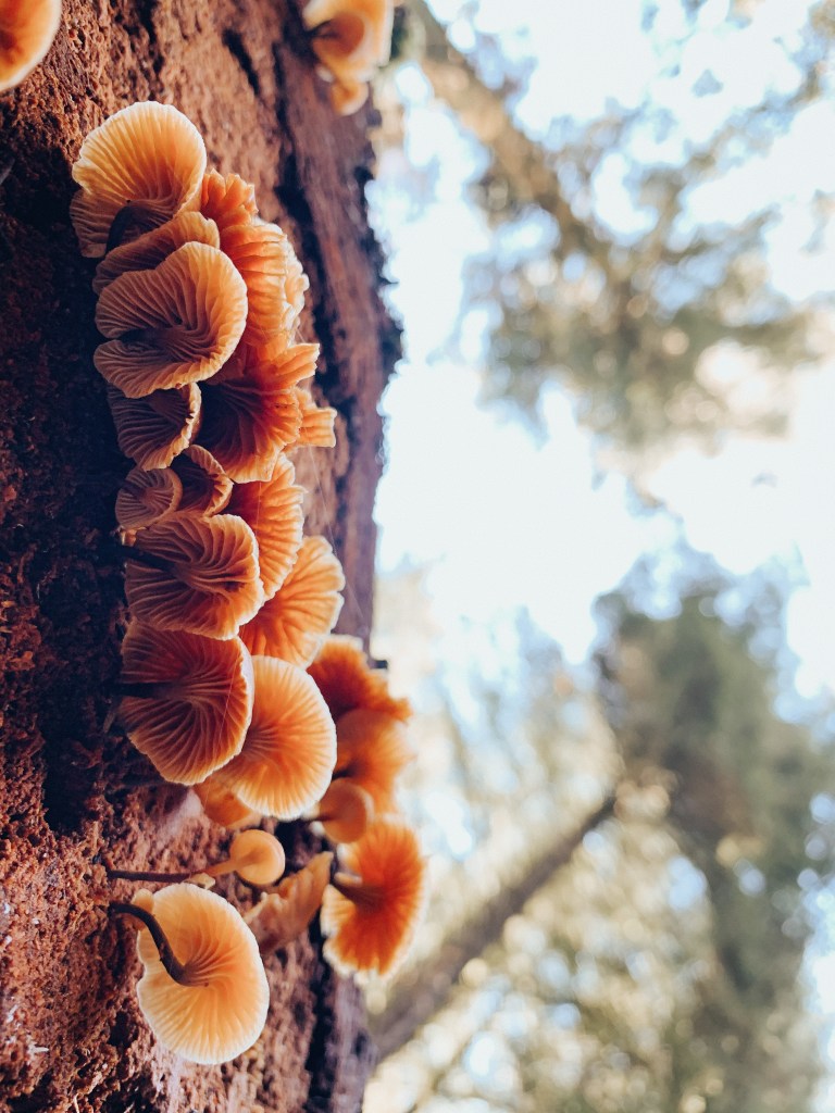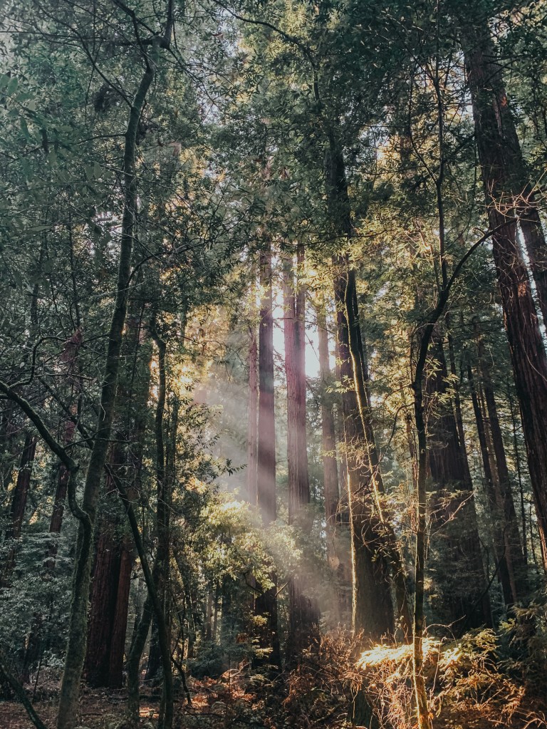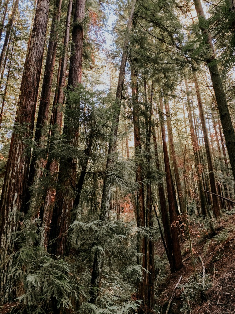 On a warm Saturday morning, my love and I set out with two of our friends to one of our local state parks: Henry Cowell. It was gorgeous, the way the morning light streamed through the trees and the birds sang overhead. The cold hit us instantly as we walked on the dirt path, so we got moving to keep warm.