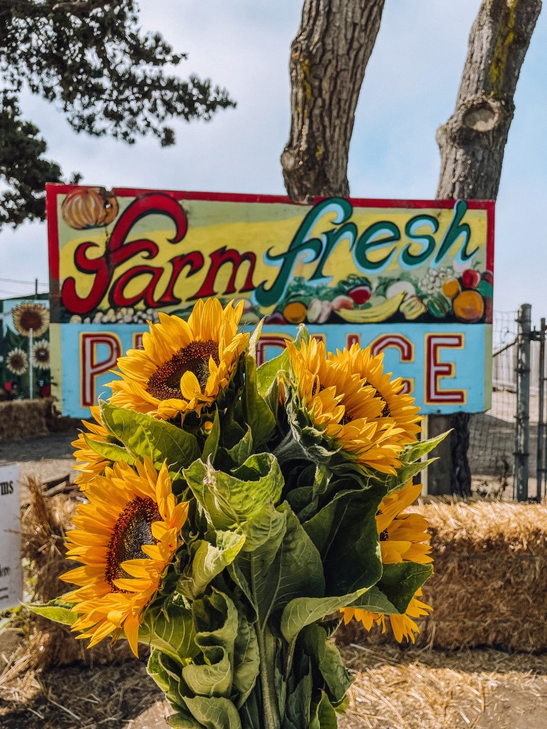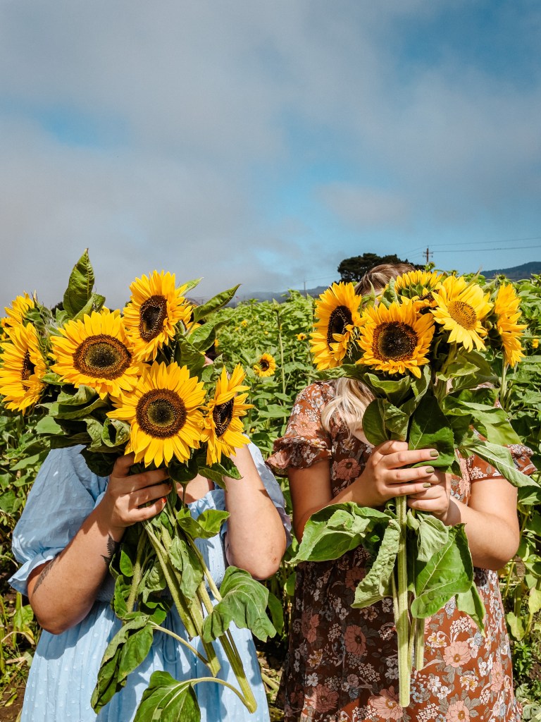 Since Half Moon Bay is a cute, coastal town with lots of foggy weather throughout the summer, Andreotti Family Farm’s sunflowers bloom a little later in the season; while most of California’s sunflowers have already been picked in June and July, the cool weather in Half Moon Bay means these sunflowers don’t reach peak bloom until September. If you missed going to the earlier summer U-Pick Farms, don’t fret – Andreotti Farms still have available dates coming soon!